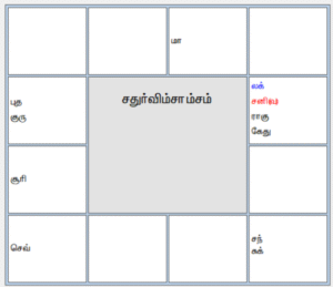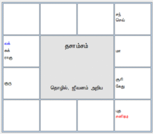 ஜாதகிக்கு சம்பாத்திய ரீதியான அமைப்பு எப்படி இருக்கிறது என்பதை அதற்கான வர்க்கச் சக்கரம் தசாம்சம் மூலம் ஆராய்வோம்.